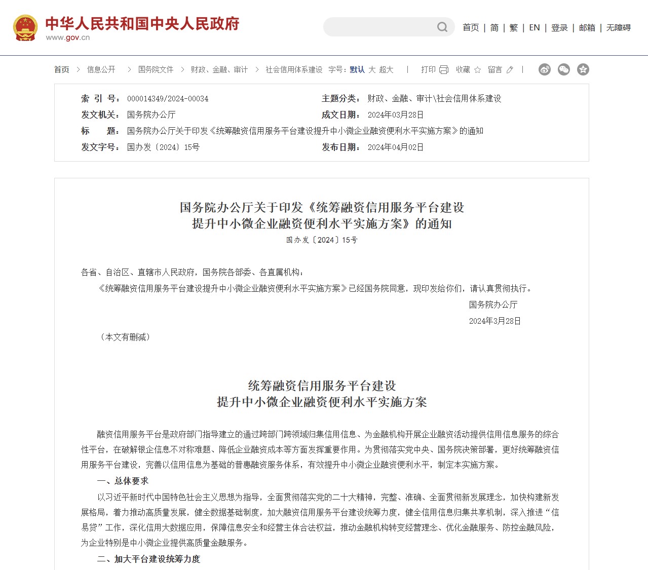关于《统筹融资信用服务平台建设提升中小微企业融资便利水平实施方案》解读