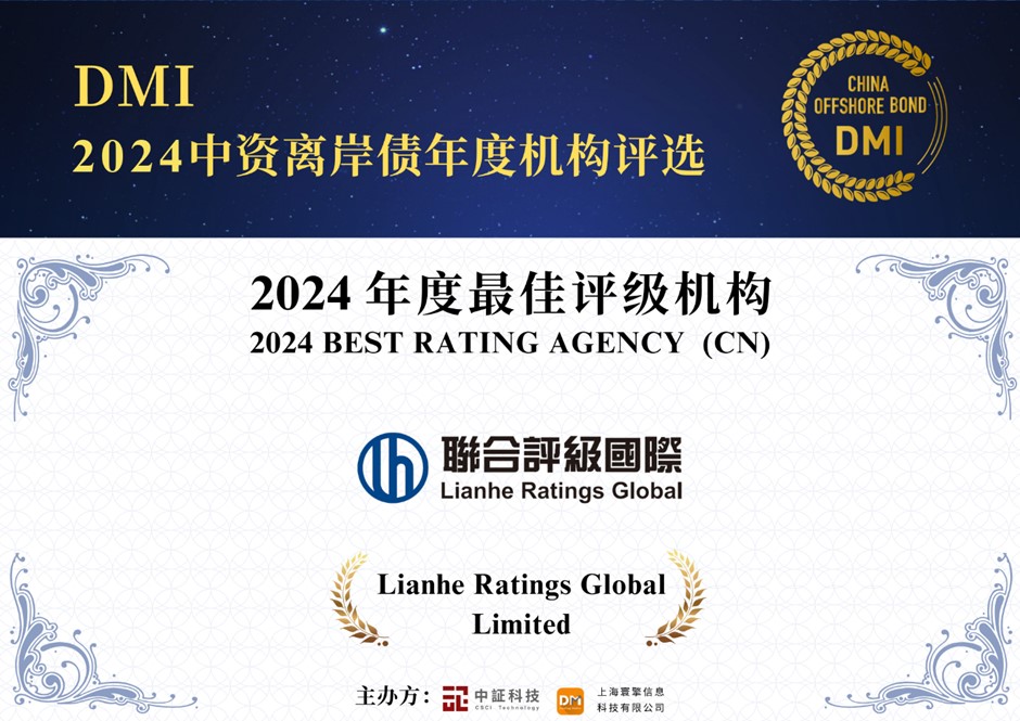 香港,2025年1月21日 —— 联合评级国际有限公司(“联合国际”或“公司”)在中证信用科技有限公司和Dealing Matrix International(“DMI”)媒体举办的“2024中资离岸债年度机构评选”中,再度荣获「年度最佳评级机构」殊荣。这是联合国际自2021年DMI首次创办该奖项以来,四年间第三次荣获该奖项。这一荣誉不仅是对联合国际过往一年在离岸债券市场领域取得卓越成就的认可,更是对联合国际长期在信用评级领域引领行业发展、推动市场创新的有力印证。此次评选由资深专家严格筛选、近百家业内专业机构参与,联合国际凭借其卓越的专业服务和对风险评估的精准洞察,赢得了业界广泛的认可和赞誉。展望未来,联合国际将继续以其深厚的专业底蕴和前瞻性视角,为全球金融市场的稳定与发展贡献中资的智慧与力量,用实践行动让信用呈现价值。