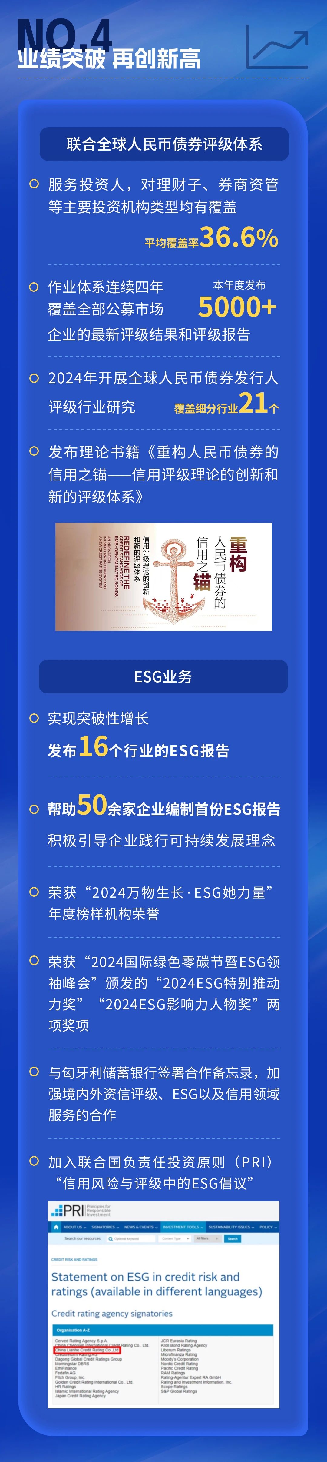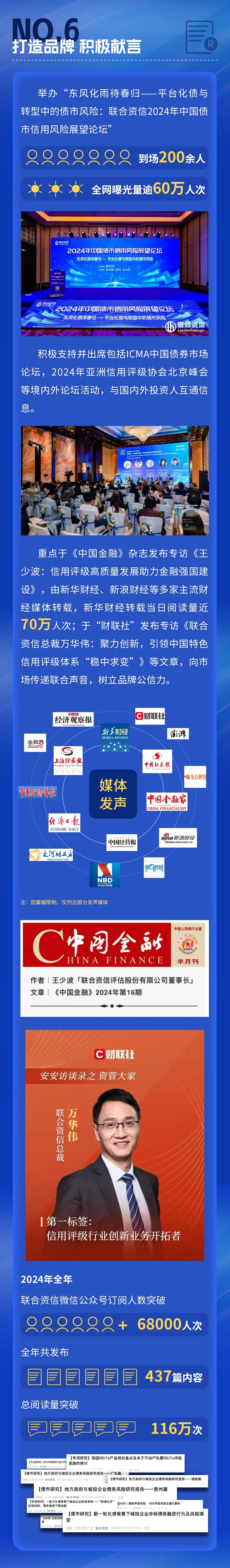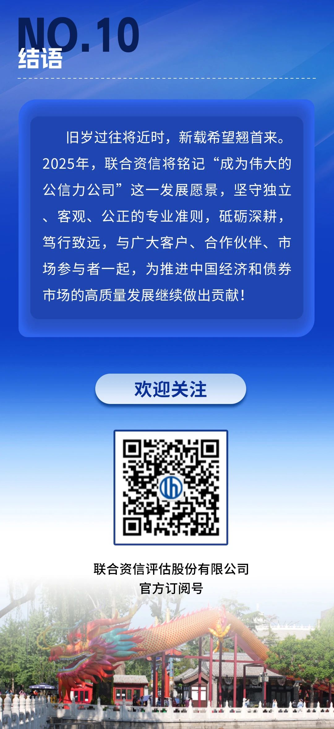 【概要描述】2024年,面对日益严峻的国际环境,中国经济顶风破浪,稳中有进,坚持高质量发展的步伐不变。联合资信紧跟市场发展,始终秉承独立、客观、公正的原则,积极应对市场挑战,全面推进转型升级,持续开拓创新,铸就了这些高光时刻。