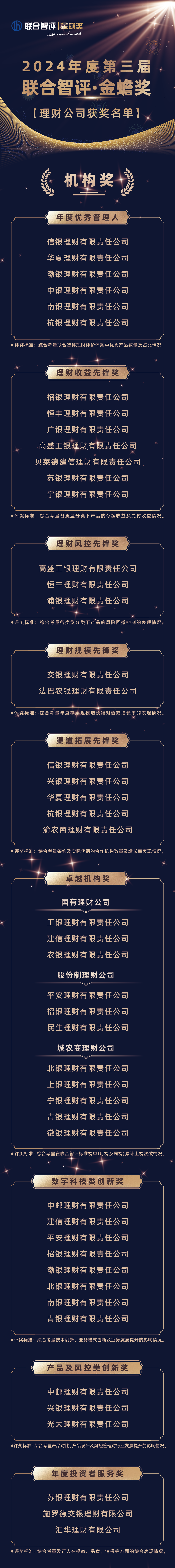 2024年度第三届联合智评理财“金蟾奖”理财公司获奖名单