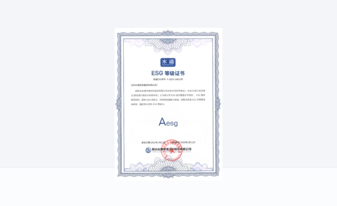 彰显卓越可持续发展能力丨水滴公司荣获联合赤道ESG评级“Aesg”级别