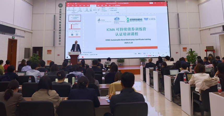 2025年3月25日,由英国驻华大使馆、北京绿色金融协会、国际资本市场协会(ICMA)和伦敦证券交易所集团联合主办的“ICMA可持续债券训练营”认证培训课程在全国温室气体自愿减排交易中心圆满落幕。联合绿色发展(以下简称“联合绿色”)的CEO戴麒佳女士作为主讲单位国际资本市场协会(ICMA)的特邀培训讲师,为与会者进行了全天的专业深入的培训课程。