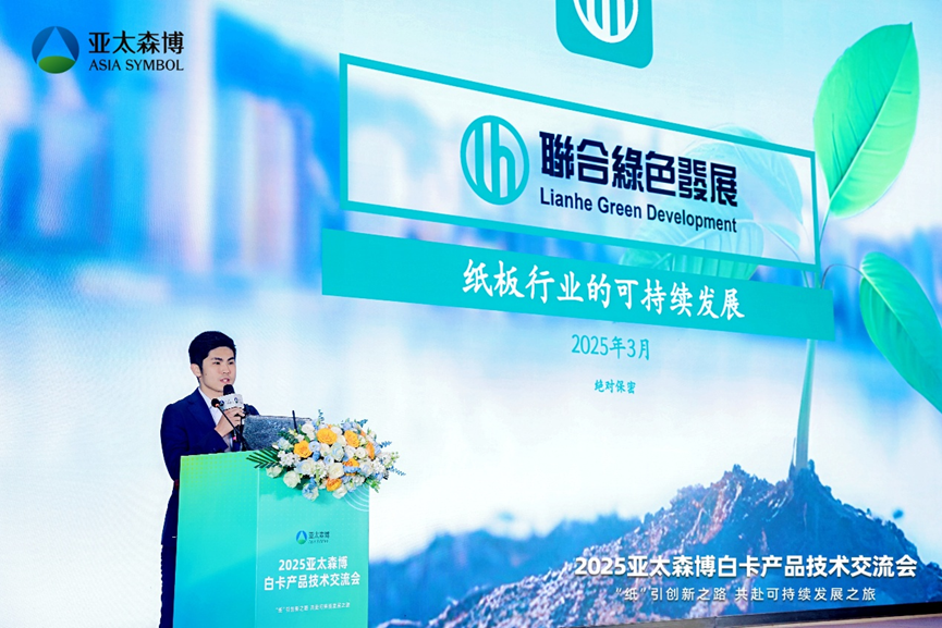 联合绿色发展有限公司(以下简称“联合绿色“)市场部联席董事林世孝先生应邀出席,为大家带来了主题为“纸板行业的可持续发展”的演讲,从政策引导、市场需求、企业转型以及市场机遇与挑战等多个维度,为行业提供了前瞻性洞察。林先生指出,绿色转型需要精准把握市场动态,紧跟政策导向,同时结合市场需求推动企业转型升级。