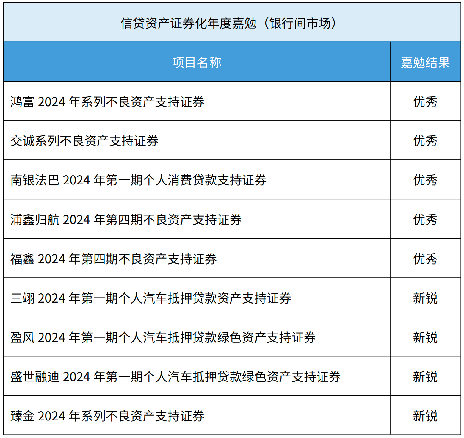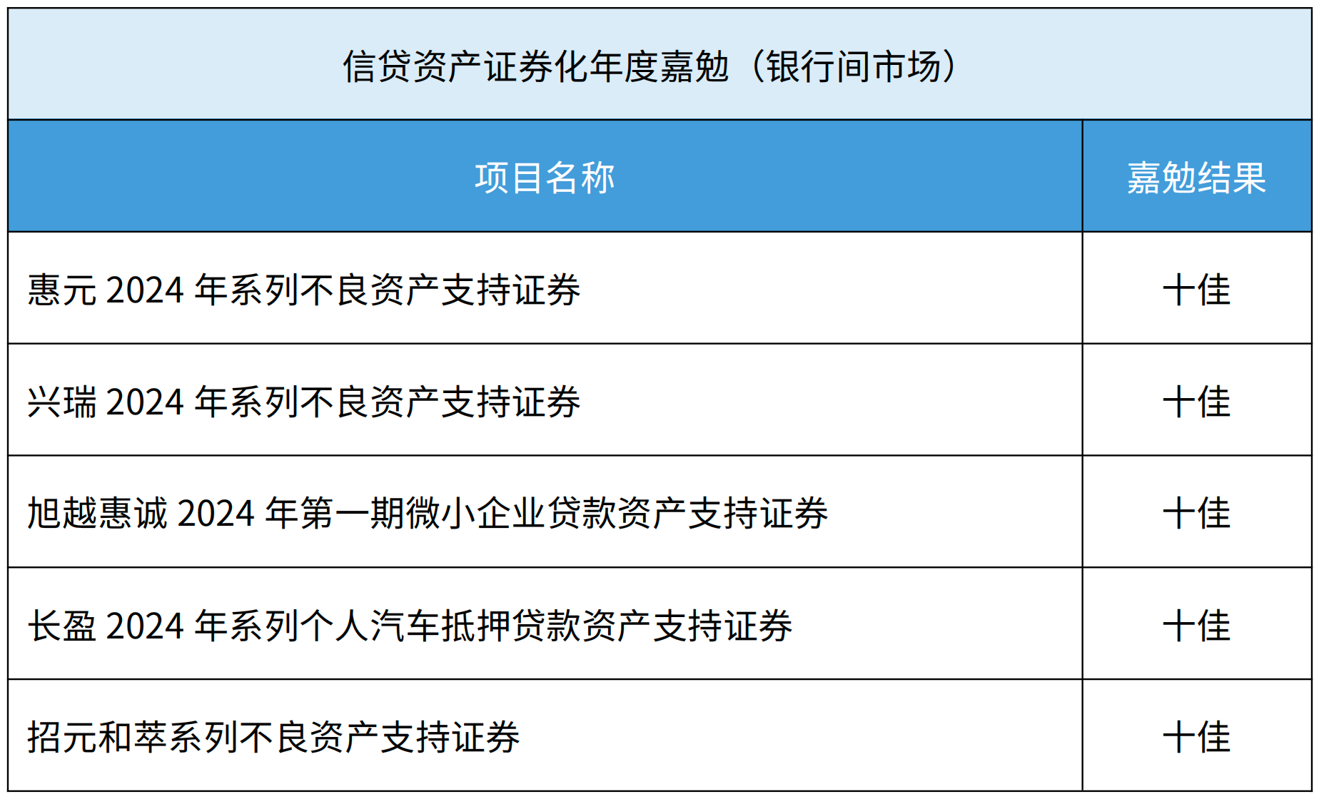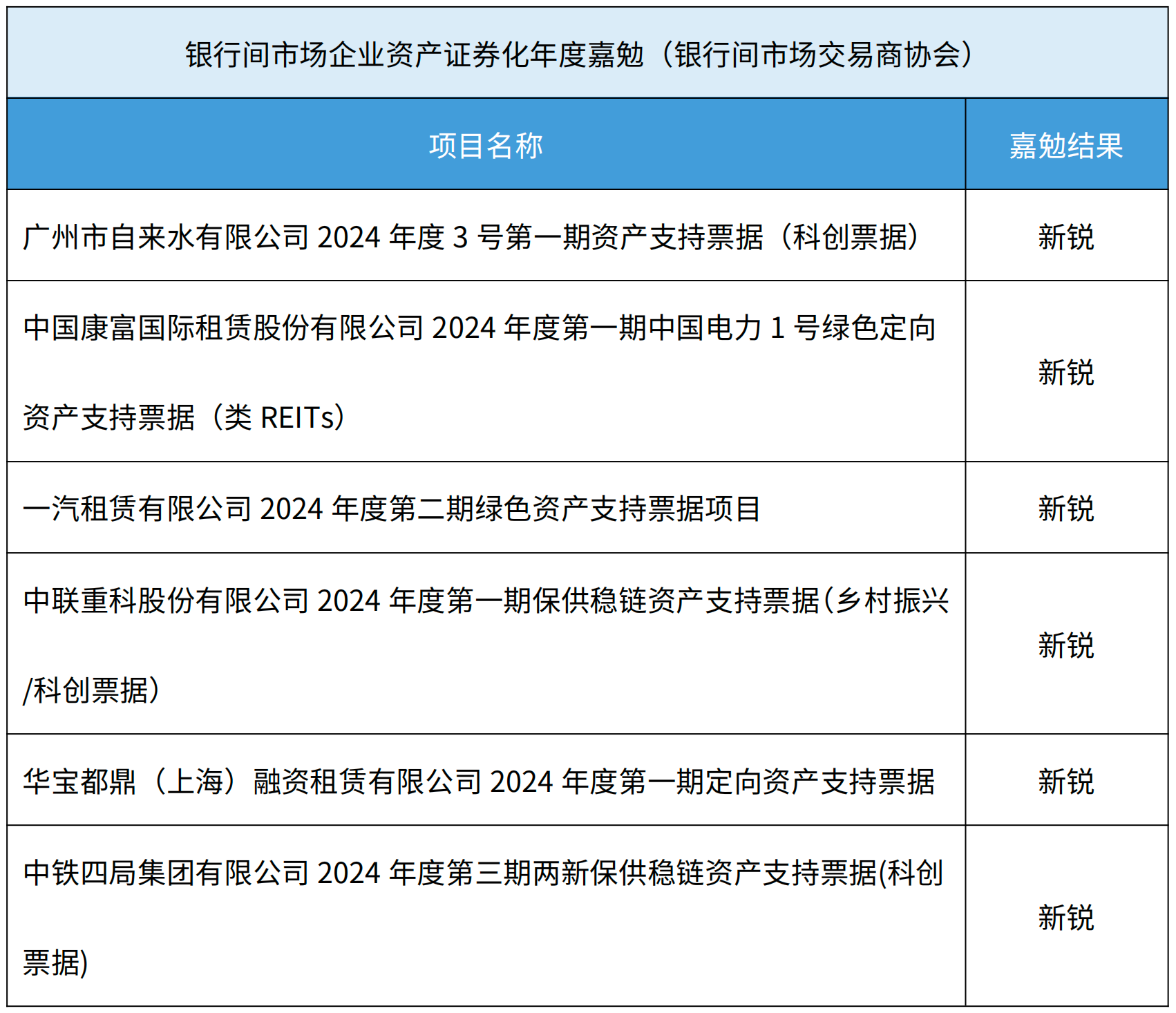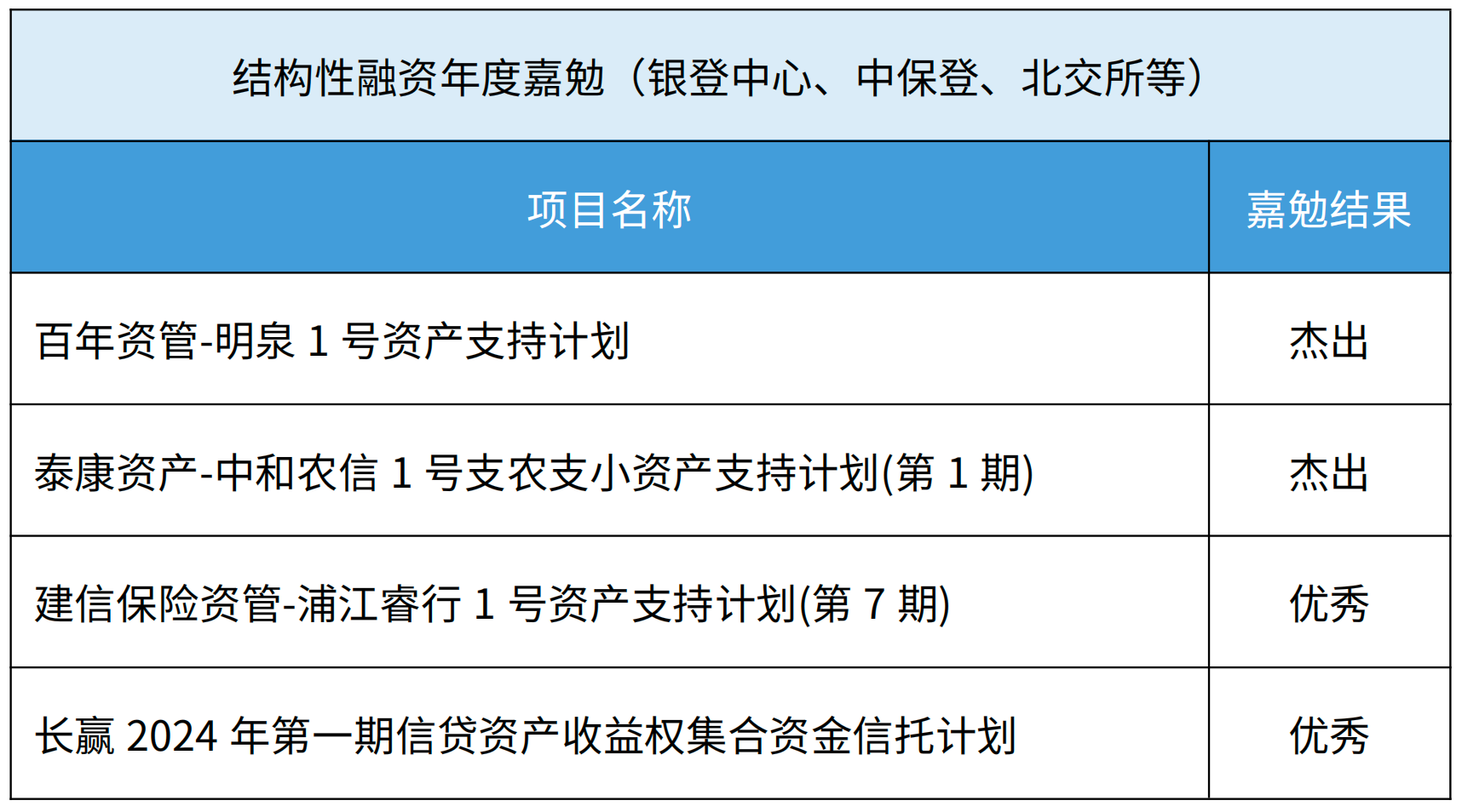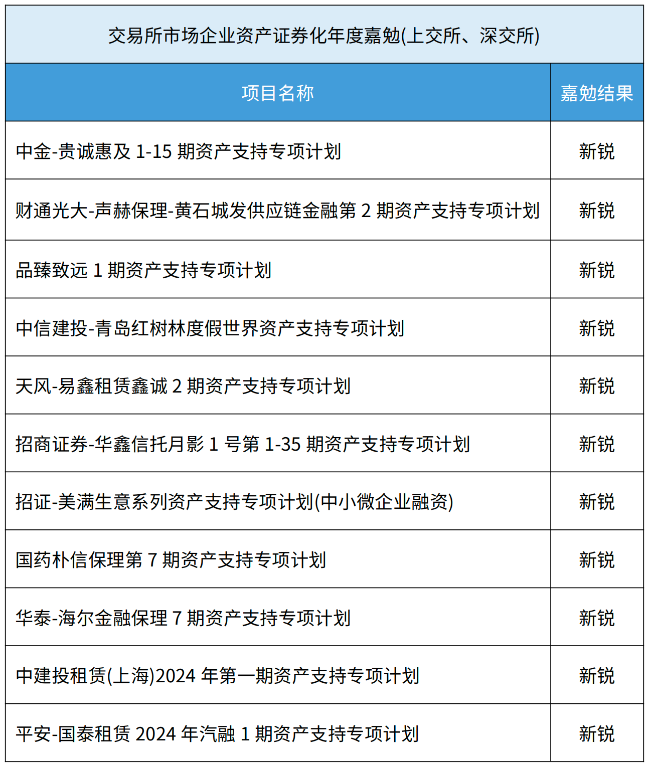 联合资信深耕资产证券化领域,不断创新产品理念及方法,凭借领先的评级技术和良好的投资人服务,在资产证券化领域始终保持行业领先地位,多年蝉联中国资产证券化论坛“年度杰出评级机构”荣誉。2024年,联合资信承做多项资产证券化项目首单,在地区乃至全国范围内促进了资产证券化领域的产品创新,为发行人和投资人提供了多维度、高质量的评级服务,得到市场各参与方的肯定与认可。