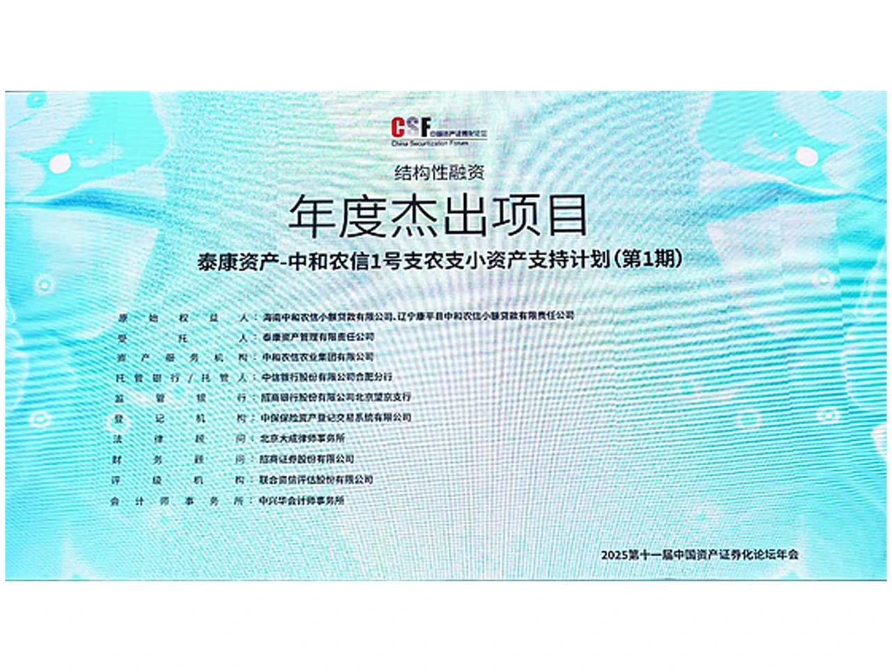 2025年5月27-28日,第十一届中国资产证券化论坛(CSF)年会在北京成功举行(以下简称“CSF论坛”)。联合资信凭借资产证券化评级的专业能力,广泛的市场覆盖率及突出的创新能力,荣获第十一届CSF论坛“年度杰出机构”嘉勉。同时,联合资信参与的多个资产证券化项目分获论坛各类别奖项,以下为具体获奖情况: