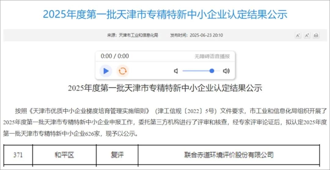 近日,天津市工业和信息化局公布了2025年度第一批天津市专精特新中小企业认定结果,联合赤道荣登榜单。