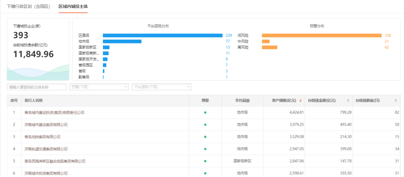 区域详情项下区域内城投主体界面