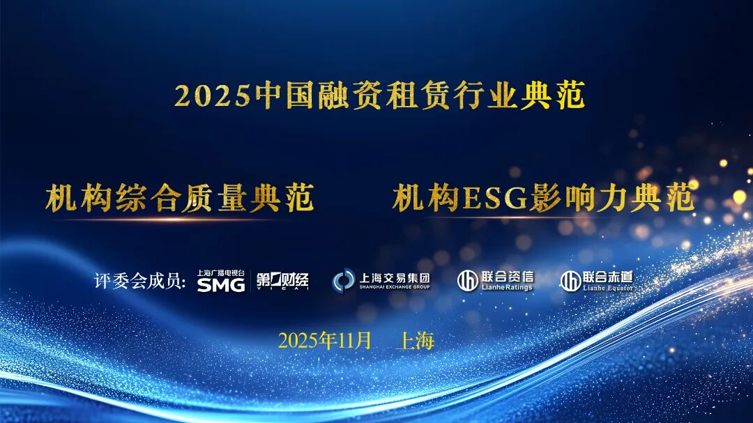 近日,由第一财经、上海交易集团、联合资信、联合赤道共同编制的2025中国融资租赁综合质量典范、2025中国融资租赁ESG影响力典范评价体系建设接近尾声,中国融资租赁前15名租赁公司名单,即将正式面向社会发布。